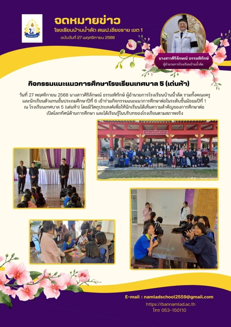 โรงเรียนบ้านน้ำลัด 62/1 ตำบลริมกก อำเภอเมืองเชียงราย จังหวัดเชียงราย